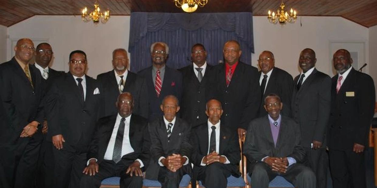 Seated: Deacon Peter Robinson, Deacon Charlie Robinson, Deacon Eddie Jenkins (Deceased), and Deacon Emeritus Clyde Brown, Jr.